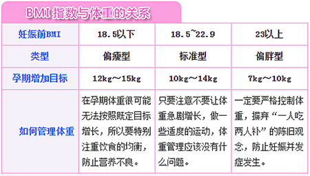 孕前體重標準18.5<BMI <24,孕期增重標準為11-16.5千克;